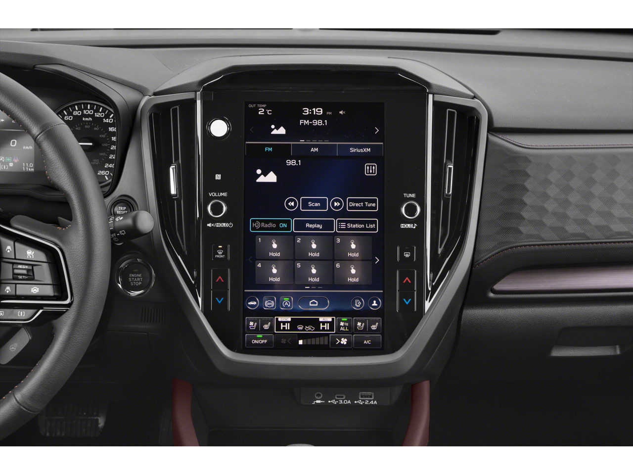 - Radio: Subaru 11.6" Multimedia Navigation System -inc: valet mode, integrated center information display, AM/FM stereo HD Radio, multi-touch gesture high resolution display screen, voice activated controls, voice activated navigation, Bluetooth® audio streaming and hands-free phone connectivity w/SMS text messaging (refer to Subaru.com for cellphone compatibility), TomTom navigation software w/what3words, iPod control capability, smartphone integration: Android Auto and Apple CarPlay w/full screen view and wireless connection, SiriusXM satellite radio w/360L (free 4-month trial subscription included), USB and Over The Air (OTA) audio system update, USB and Map Over The Air (MOTA) TomTom navigation system update (3 years free map updates), steering wheel controls, harman/kardon speaker system w/11 speakers and 576 watt equivalent maximum output amplifier, 3.5mm auxiliary input jack and roof mounted audio, satellite antenna and SiriusXM Travel Link (4 months free trial included/subscription required after)